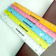 Each pack contains one of each of the following coloured transparent rulers: Pink, Yellow, Blue, Orange, and Clear.