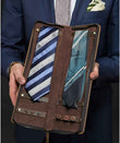 Ties Travel Case Leather Neckties Storage Box Formal Dress Accessories Anti Wrinkle Organizer for 2 Ties with Cufflinks Holder
