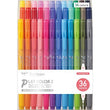 Add vibrance to your notebooks with these fun, cute, and convenient water-based felt pens. Each pen is equipped with two sides, the 0.4mm extremely fine plastic core tip and the 1.2mm thick fiber core tip. You can easily switch between both sides when alternating from drawings to fine-line writing!