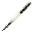 TWSBI Diamond 580 Fountain Pen Clear. Transparent barrel reveals the filling mechanism, a built-in piston-filler with a very smooth action. Chromed metal trim and pocket clip. TWSBI logo nicely finishes the top of the pen's cap. Rubber o-ring on cap thread ensures an airtight seal to prevent ink drying out in the pen, whilst also ensuring that the cap is firmly attached to the pen when not in use.