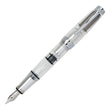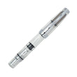 TWSBI Diamond Mini AL Fountain Pen. Transparent crystal-clear diamond-faceted barrel reveals the filling mechanism, a built-in piston-filler in aluminium with a very smooth action, whilst also allowing an uninterrupted view of the ink level and colour. Part transparent, part smoke-finish cap; aluminium grip section. Chromed metal trim and pocket clip. TWSBI logo nicely finishes the top of the pen's cap. Rubber o-ring on cap thread ensures an airtight seal to prevent ink drying out in the pen, whilst also ensuring that the cap is firmly attached when not in use.