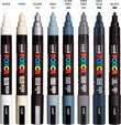 Uni Posca Paint Marker PC-5M - Medium Point - 8 Color Set - Mono Tone – White, Ivory, Silver, Grey, Navy Blue, Black