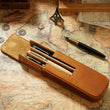 3 Slots Fountain Pen Collector Organizer - Handmade Pen Case Vintage Crazy Horse Print Leather Pen Protective Sleeve Cover Pen Storage Gift Box